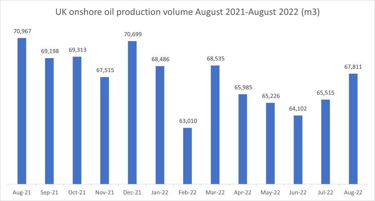 Daily production at the UK’s biggest onshore oil field also recovered, from a nine-year low in July 2022. In August 2022, production on all measures was up 3% on the previous month. Weight and volume were at the highest level since March 2022. The field’s contribution to UK onshore production fell slightly, from 83.51% in July 2022, to 83.22% in August 2022.