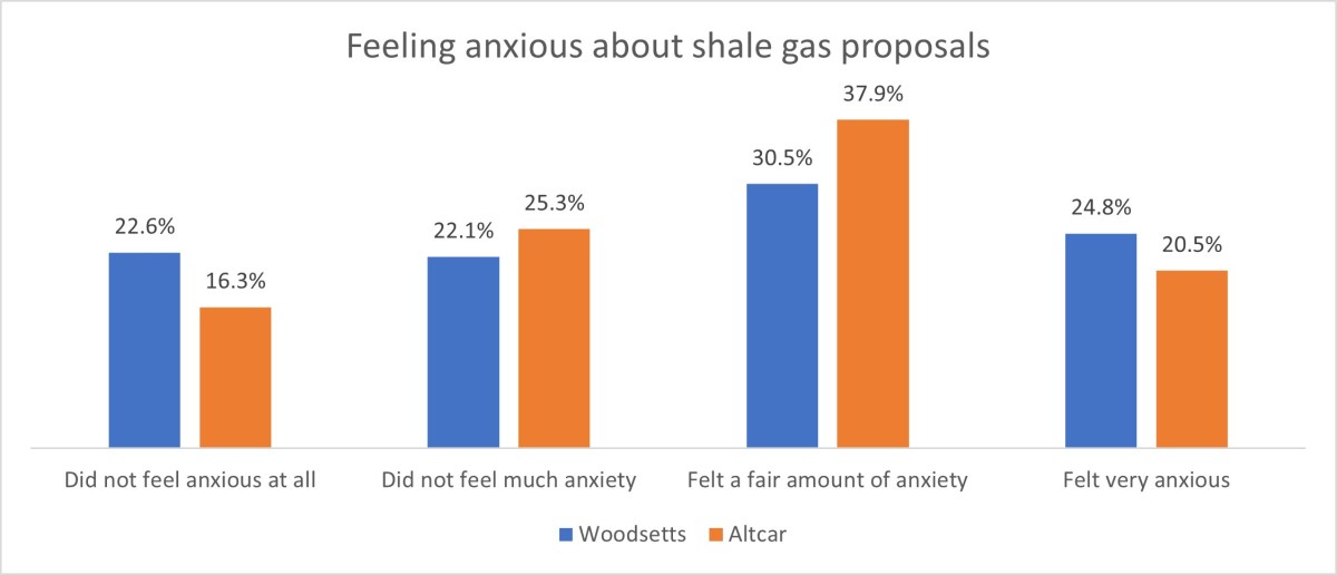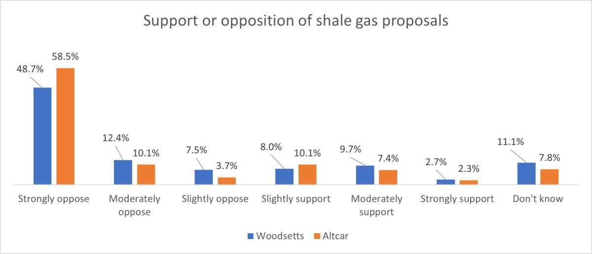 *The surveys were carried out in spring 2020 in Altcar and summer 2021 in Woodsetts with a representative sample of 217 residents around Altcar and 226 around Woodsetts. The study were part of a research programme on unconventional hydrocarbons in the UK funded by two government funding councils. Charts in this post are based on data from the study.