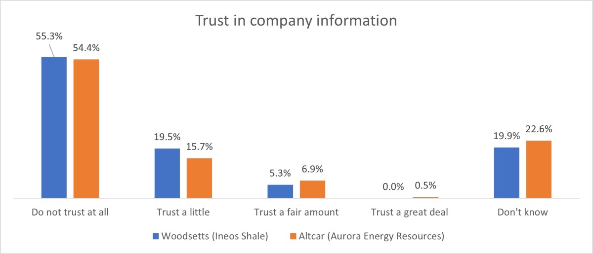 Less than 1% trusted company information a great deal. And less than 10% trusted it a fair amount (5.3% for Woodsetts and 6.9% for Altcar).