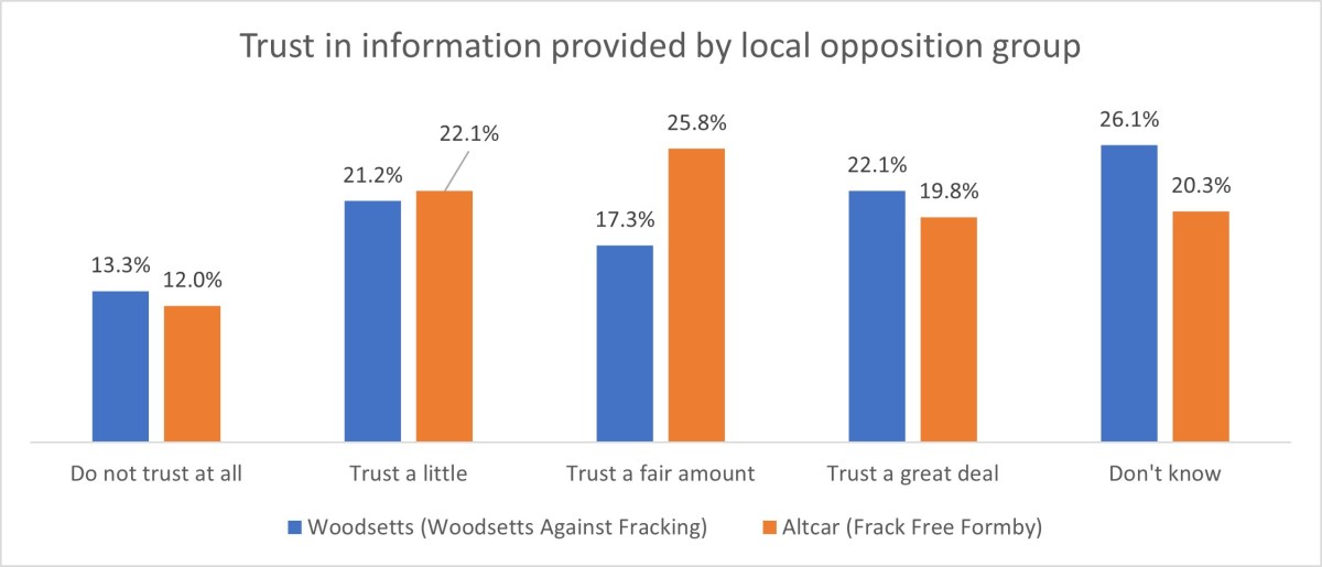 In contrast, more than 60% trusted information to some degree from Frack Free Formby and Woodsetts Against Fracking.