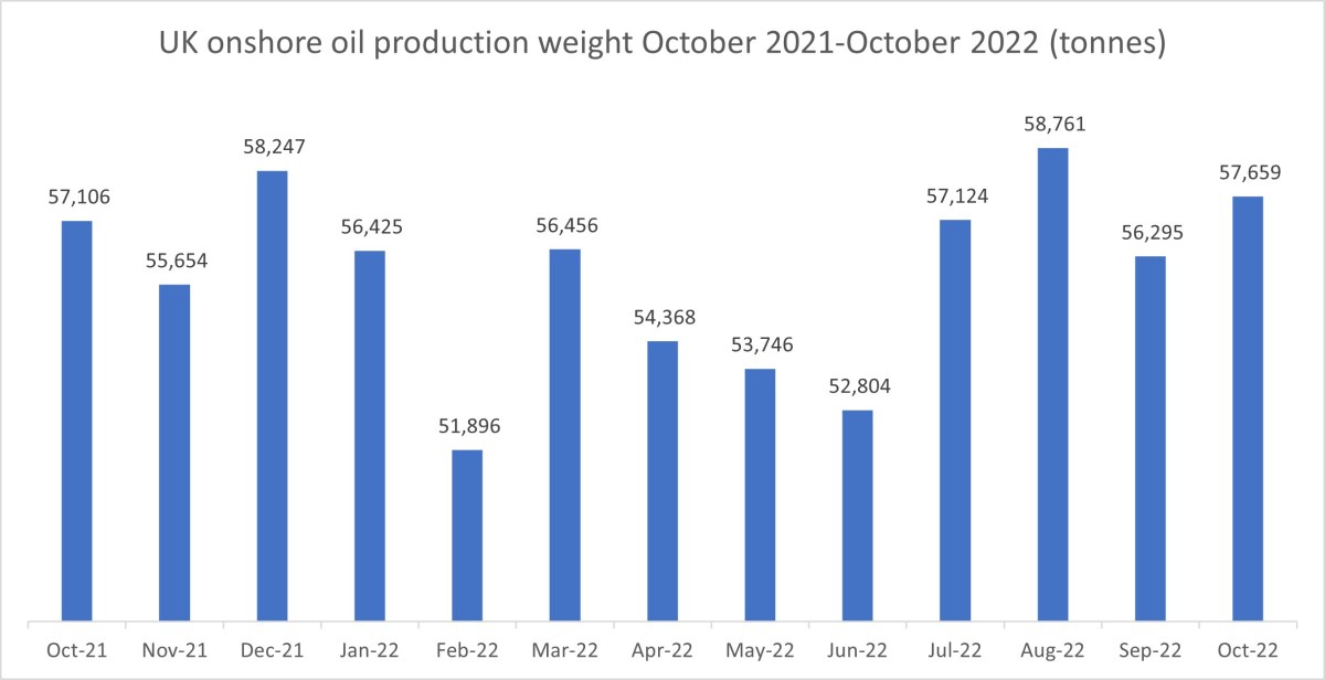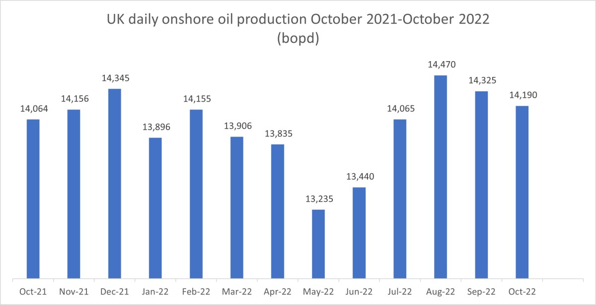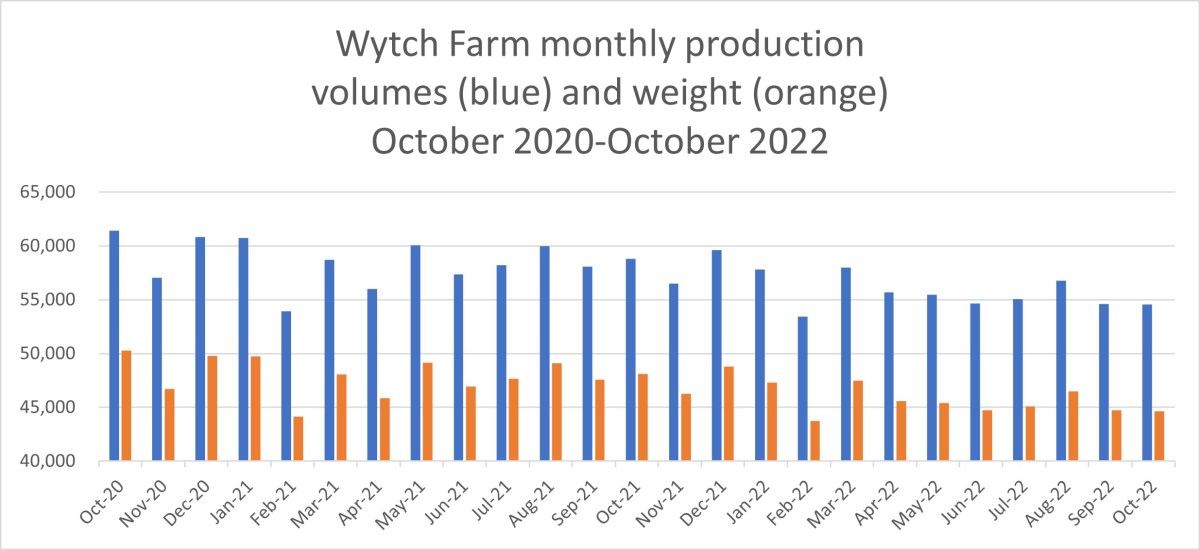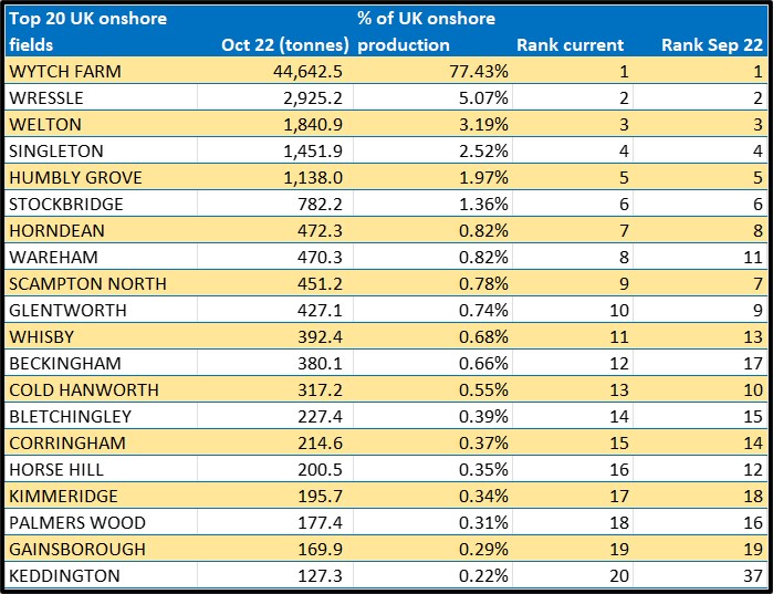- Other fields which reported falling production in October 2022, compared with September 2022, included Cold Hanworth, Horse Hill, Palmers Wood and Storrington