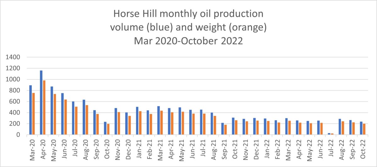 - The volume of water produced at the site was down from 185m3 in September to 135m3 in October 2022