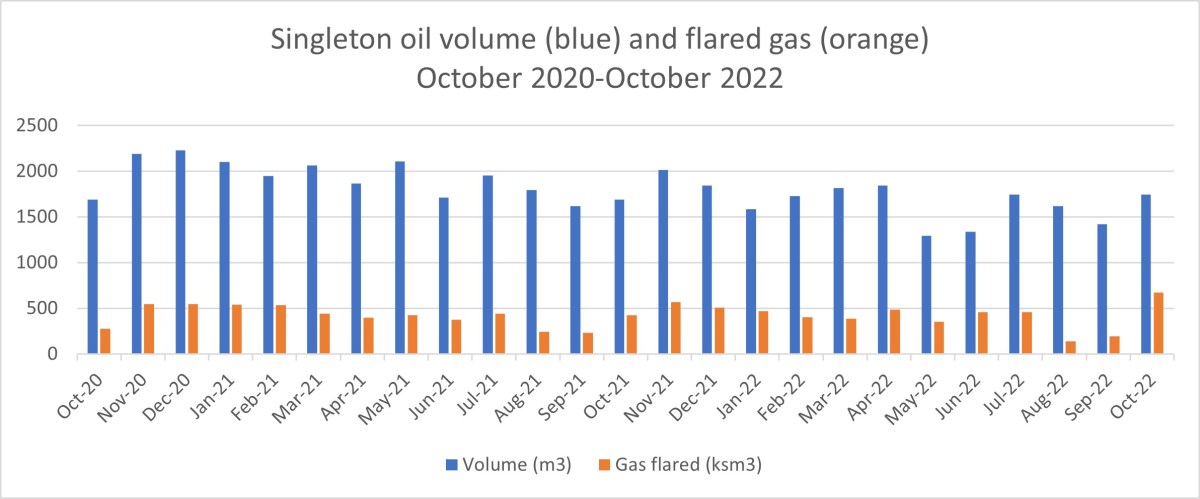 - October 2022’s volume of flared gas was up 63% on September 2022 (801 ksm3)