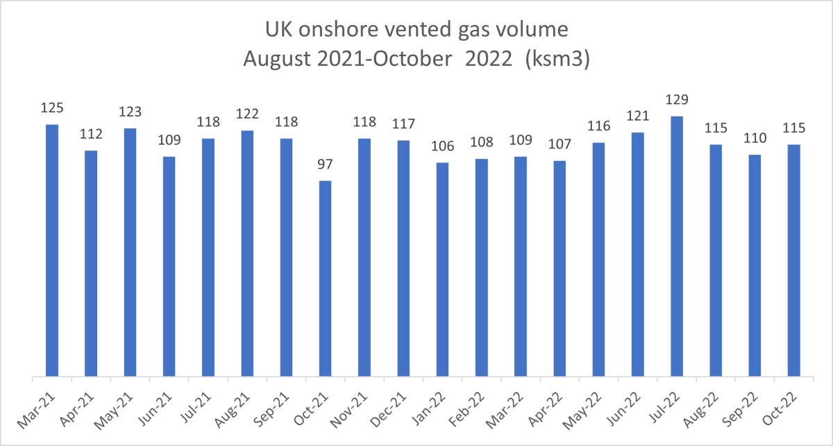 Volume of vented gas at UK onshore oilfields: 115 ksm3