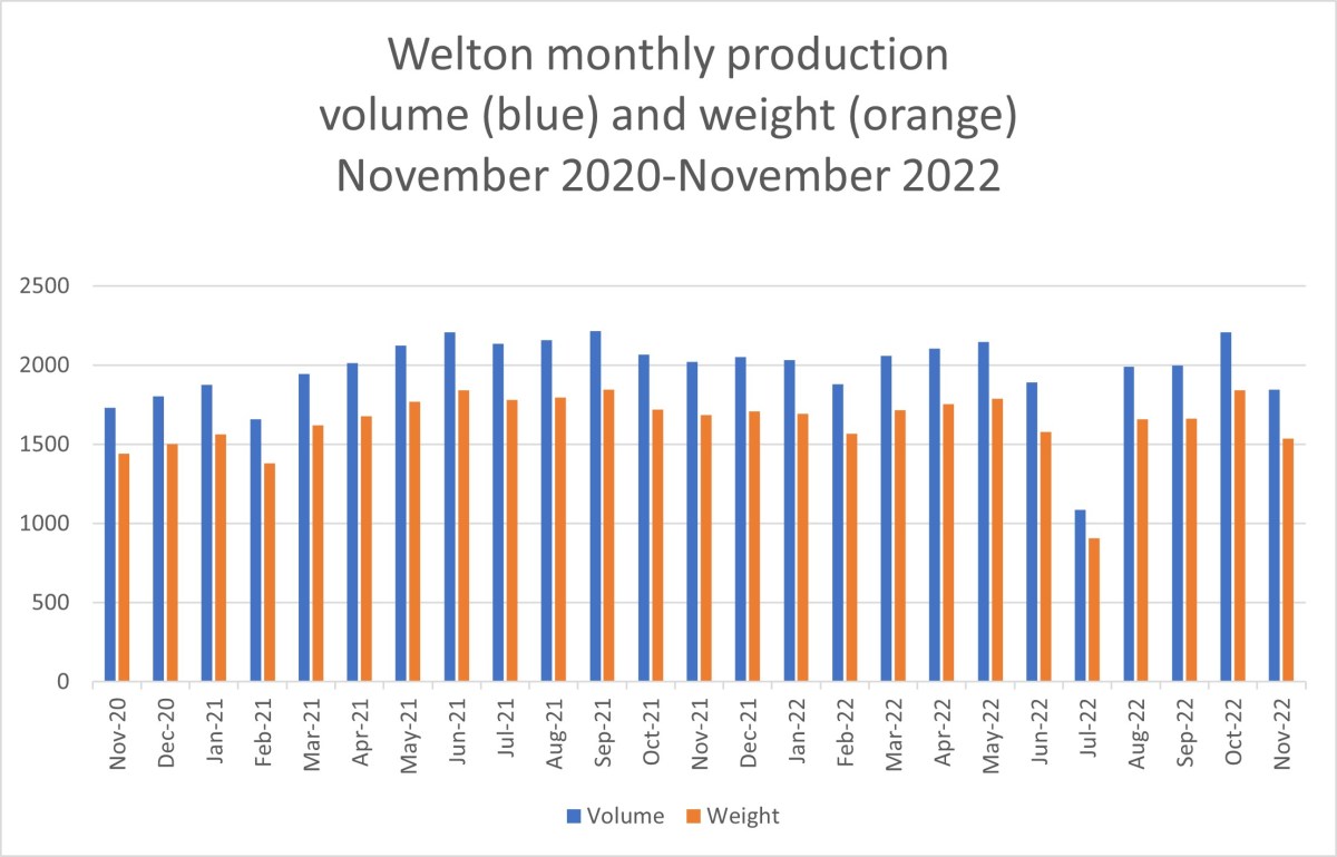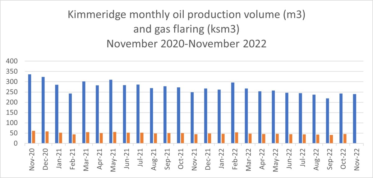 - Oil production volumes increased by 11% between October and November 2022 (up from 1,743m3 to 1,935m3).