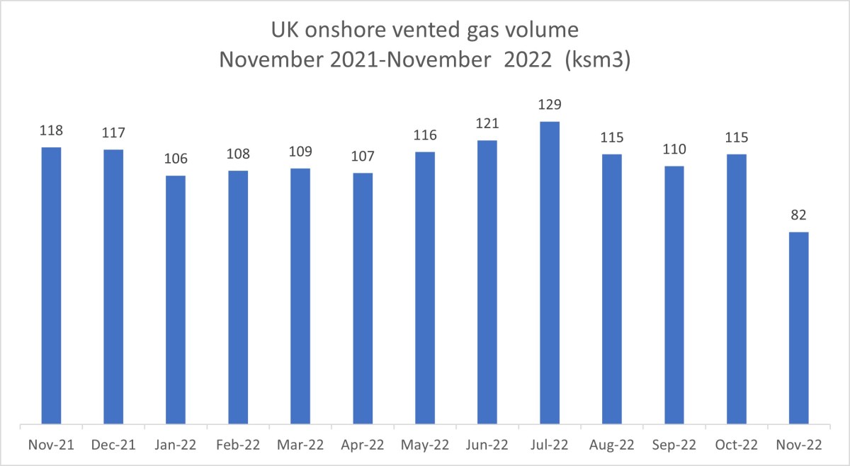 - November 2022’s volume of vented gas was the lowest since May 2020