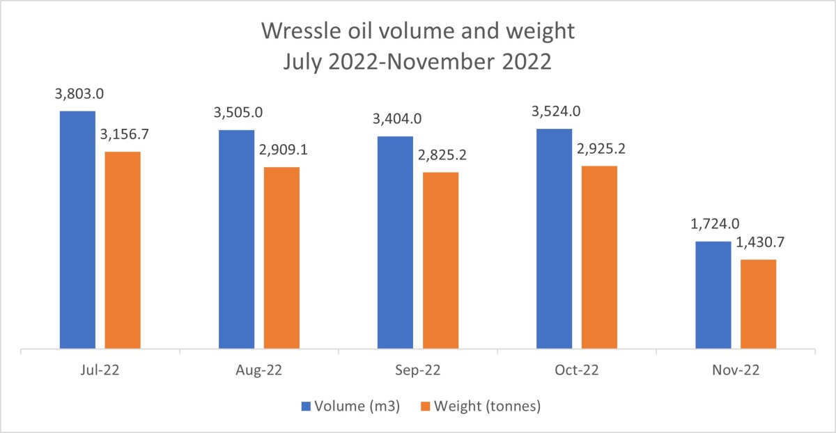 - Volume and weight of oil produced in November 2022 was more than 4% down on October 2022