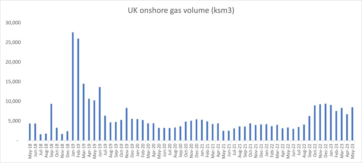 - Total onshore gas production rose by more than 25% in May 2023, compared with the month before