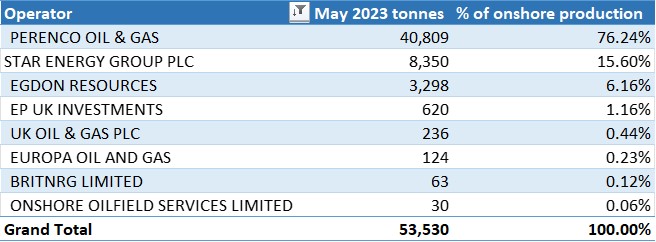 Perenco, the operator of Wytch Farm, Wareham and Kimmeridge, saw its production recover to 40,809 tonnes in May 2023, up from 12,572 tonnes in April 2023 following the pipeline leak. Perenco’s share of UK onshore oil production rose to 76%, up from 51% the month before.
