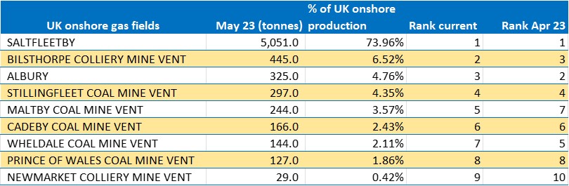 - Saltfleetby, in Lincolnshire, saw production increase by nearly 2,000ksm, up 50%, in May 2023, compared with the month before. Volume was 5,992ksm, the highest since September 2022, when production restarted.
