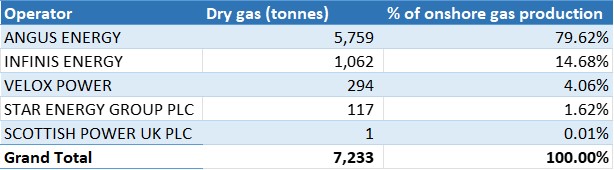 Onshore contribution to UK total production: 1.99% of oil and 1.16% of gas
