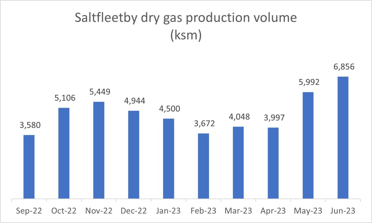 Production at Saltfleetby, in Lincolnshire, rose to its highest level since it resumed in September 2022. The volume of gas in June 2023 was 14% higher than in May 2023, up from 5,992ksm to 6,856ksm.