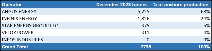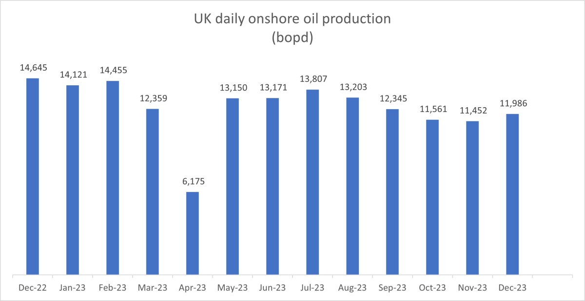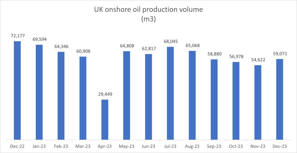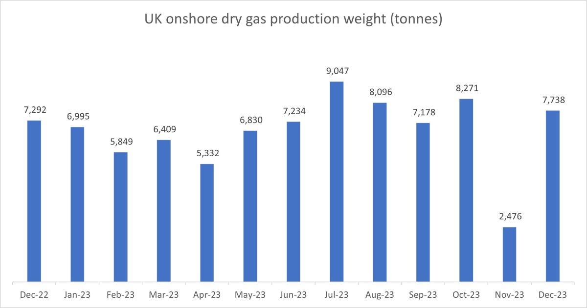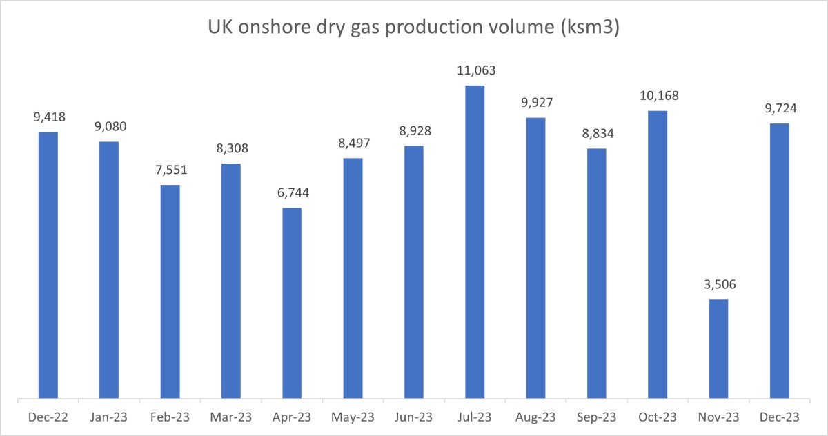 Daily onshore gas production was up 168% in December 2023 compared with the previous month, with the resumption of production at Saltfleetby.