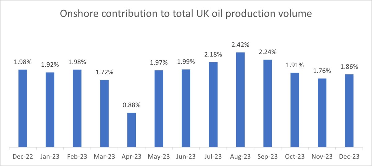 Onshore oil’s contribution to UK total production: 1.86% (November 2023: 1.76%)