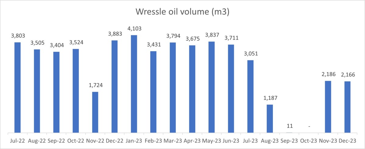 Oil volume: 59,071m3 (November 2023: 54,622 m3)