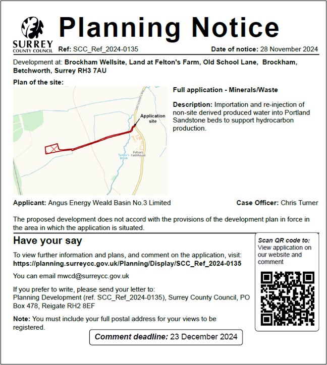 Surrey County Council opened a public consultation yesterday (28 November 2024) on a planning application submitted by Angus Energy.