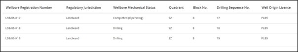 Source: Extract from NSTA Public Wellbore Search