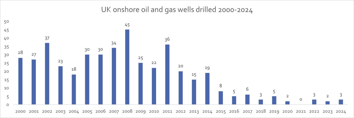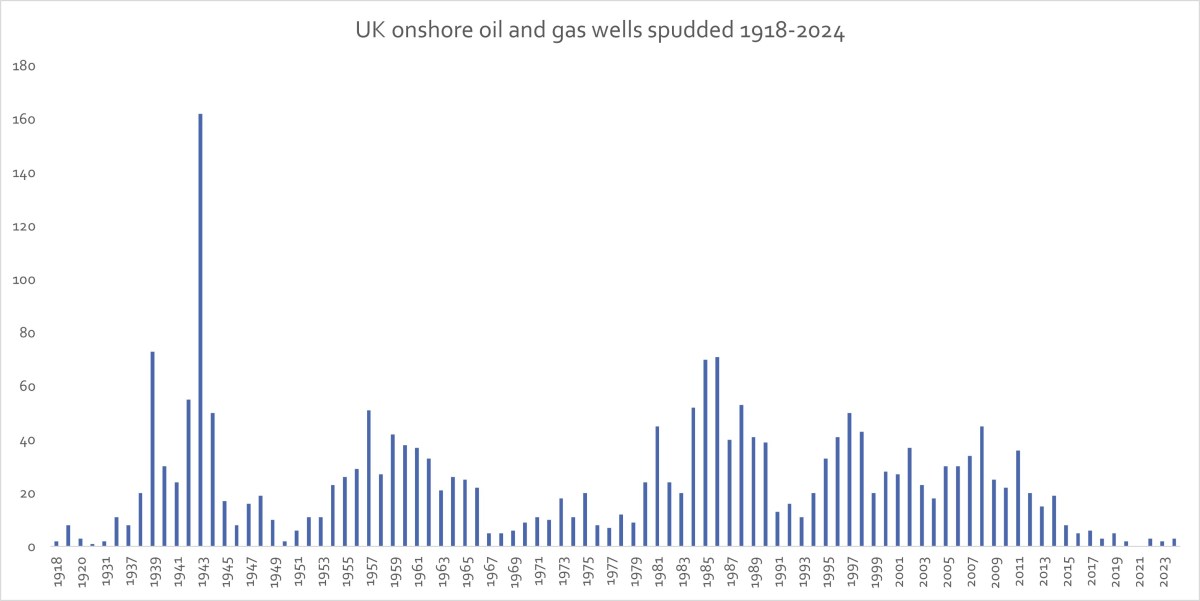 At the time of writing, the figures, from the North Sea Transition Authority’s public wellbore search, show just three onshore wells were spudded (started drilling) in 2024.