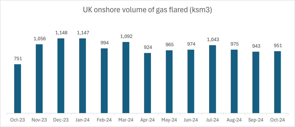 Volume of flared gas at UK onshore oil fields: 951 ksm3