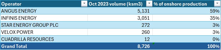 There was no production from 12 onshore fields in October 2024, according to the data. This is five fewer than in September.