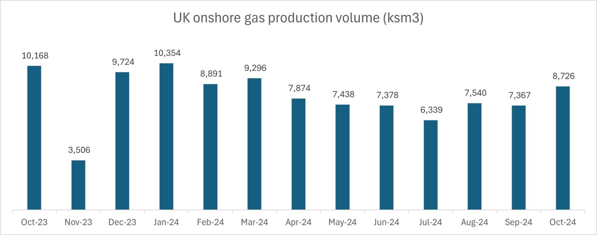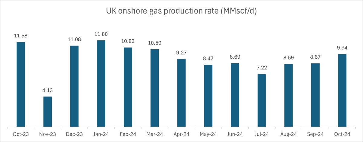 In contrast, UK onshore daily gas production rose for the third consecutive month in October 2024 to the highest level for seven months.
