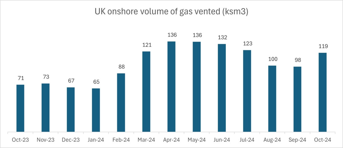 Volume of vented gas at UK onshore oil fields: 119 ksm3