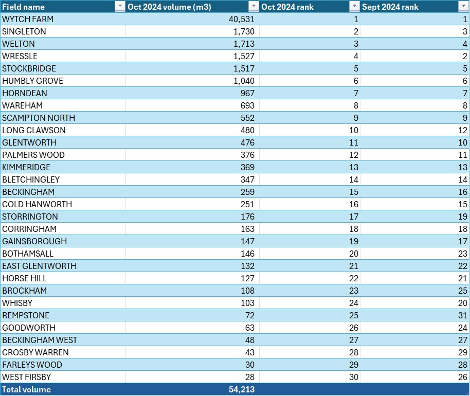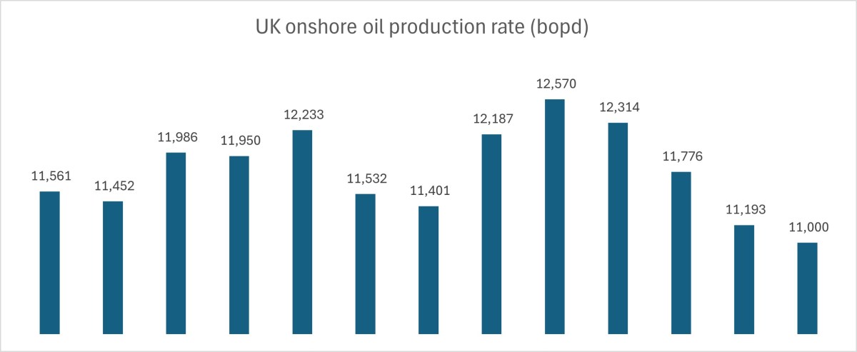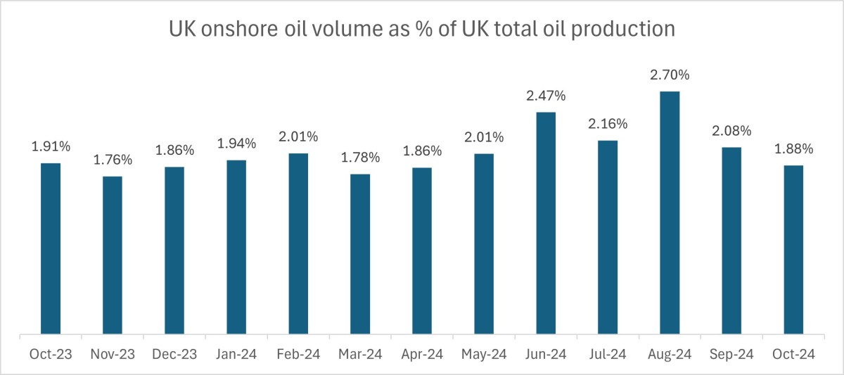 October 2024 saw the lowest daily production rate for UK onshore oil since the oil leak at Wytch Farm 18 months earlier.