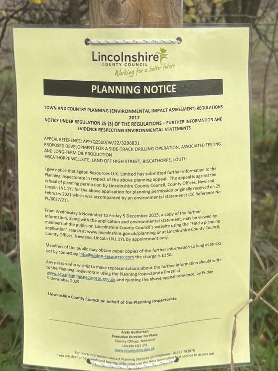 Biscathorpe comments deadline. The closing date for comments on Egdon Resources’ addendum to its environmental statement on climate emissions from burning oil from Biscathorpe in Lincolnshire. Comments should be sent by email to VE.RT@planninginspectorate.gov.uk using the appeal reference APP/Q2500/W/22/3296831.