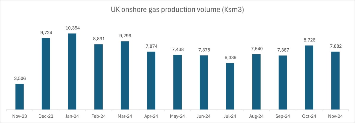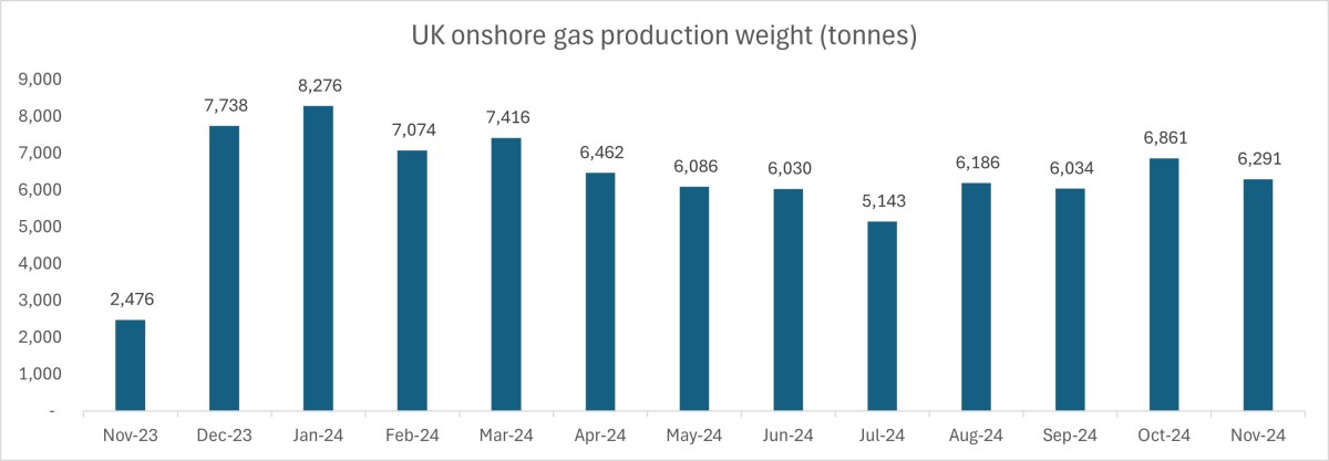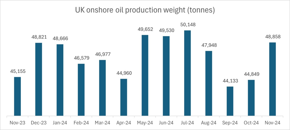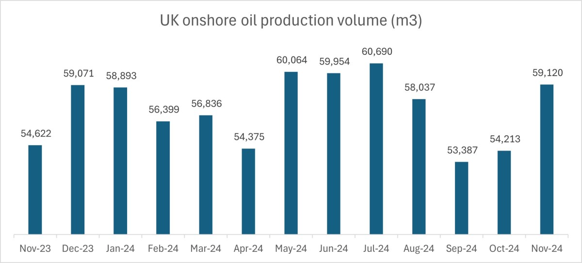 UK production of onshore oil was up in November 2024 but onshore gas was down, according to official figures just released.