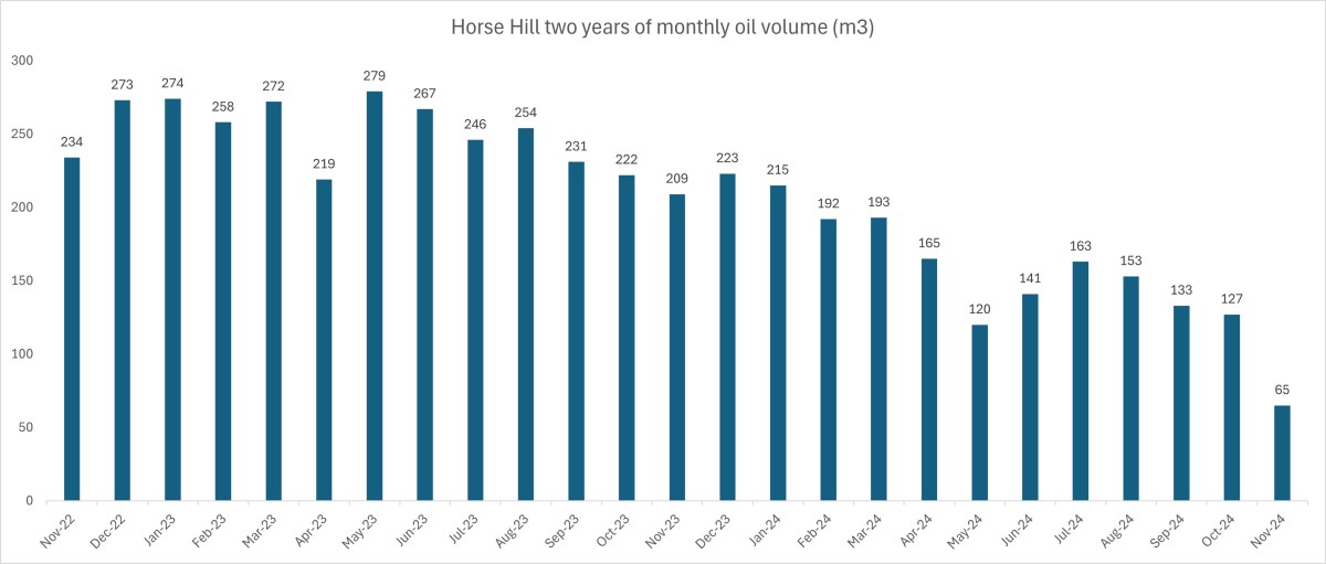 Horse Hill in Surrey reported 65m3 of oil production, despite announcing that it had voluntarily suspended extraction in October 2024.