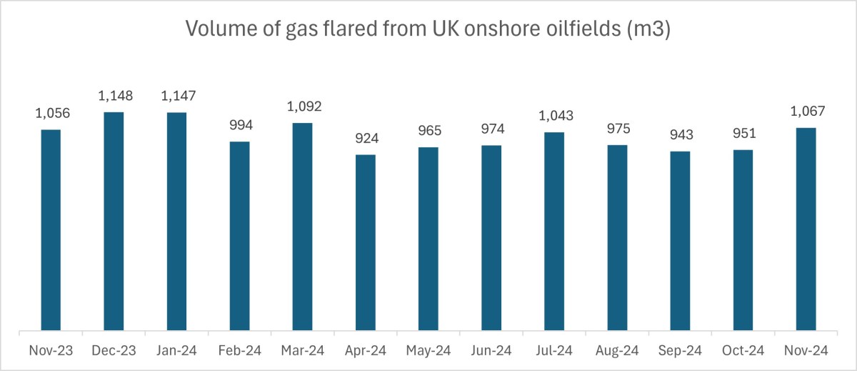 Volume of flared gas at UK onshore oil fields: 1,067m3