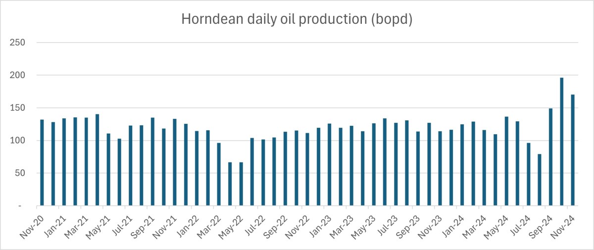 But according to the data, published by the North Sea Transition Authority (NSTA), Horndean oil production was 196bopd in October 2024 and 170bopd November 2024, the most recent data publicly available at the time of writing.