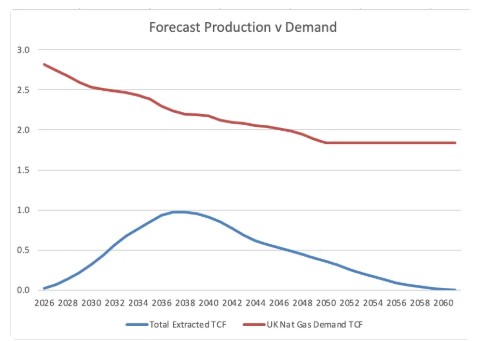 “I simply do not believe that it is possible to realistically model a scenario where 15.8 tcf of natural gas is extracted over a period of 36 years while meeting 87% of the UK’s realistically forecast natural gas demand in its peak production year.