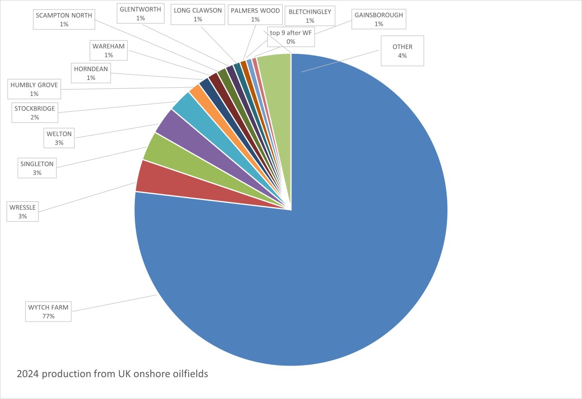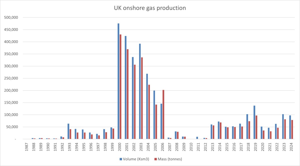 But the contribution of onshore oil to total oil production rose in 2024 to 2.07%, up from 1.88%. This probably reflects a 12% fall in UK offshore oil production.