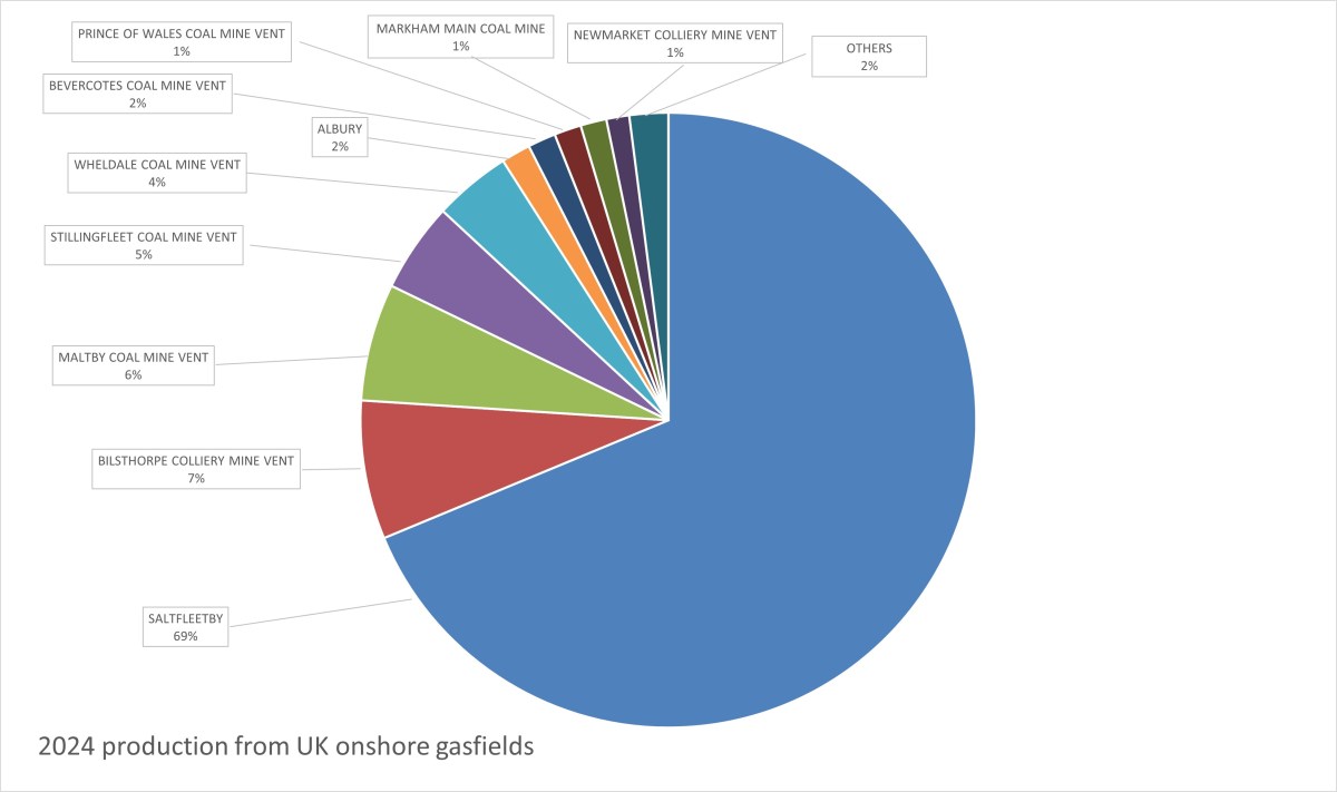 The UK’s largest producing gasfield, at Saltfleetby in Lincolnshire, saw production rise by 3% in 2024.