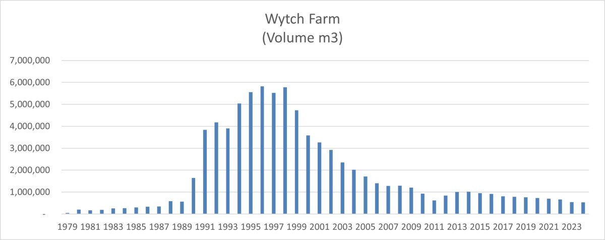 Wytch Farm’s contribution to UK onshore oil was up slightly at 76.9% in 2024, compared with 76.1% in 2023. But this is well below Wytch Farm’s average of 87.3% for the past 46 years.