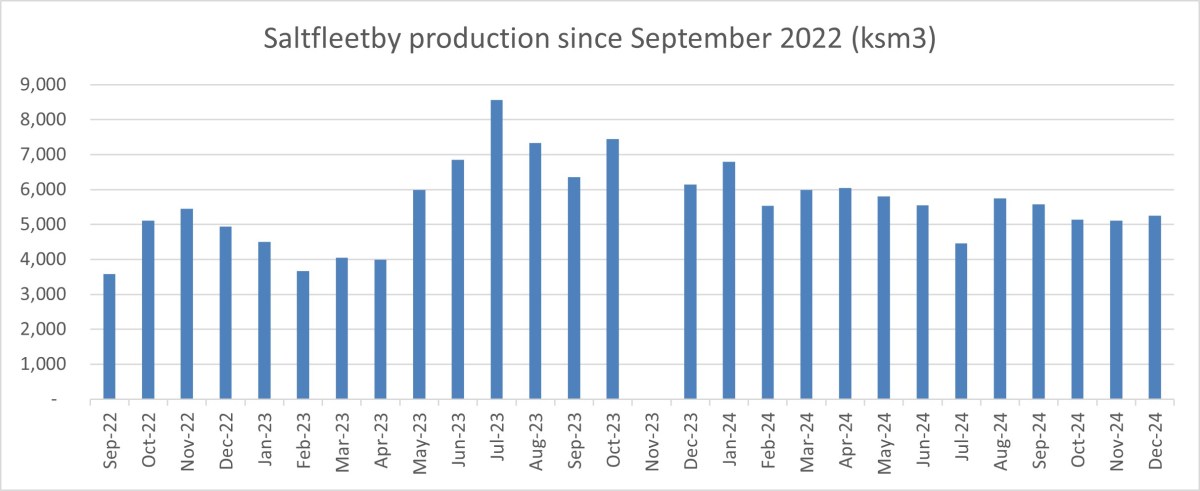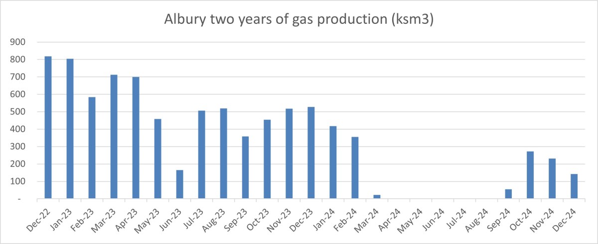 There was no production from 10 onshore fields in December 2024, according to the data. This was five fewer than in November 2024.