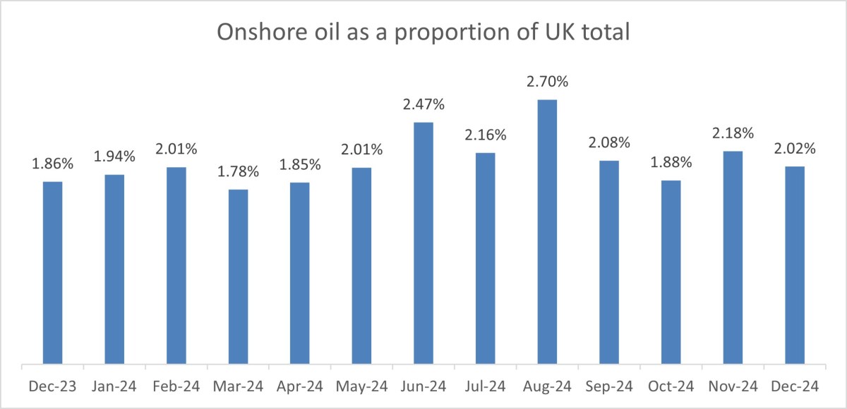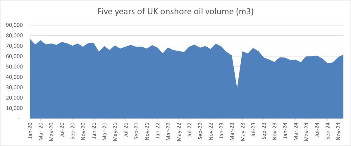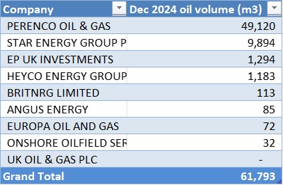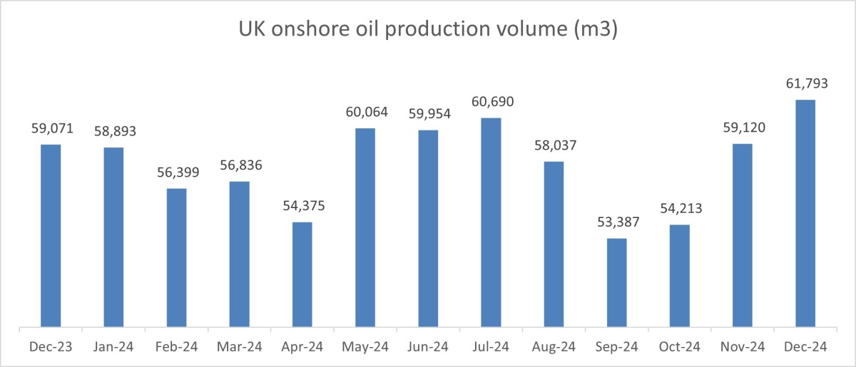 December was the first month since July for UK onshore oil volume to top 60,000m3 and weight to exceed 50,000 tonnes.