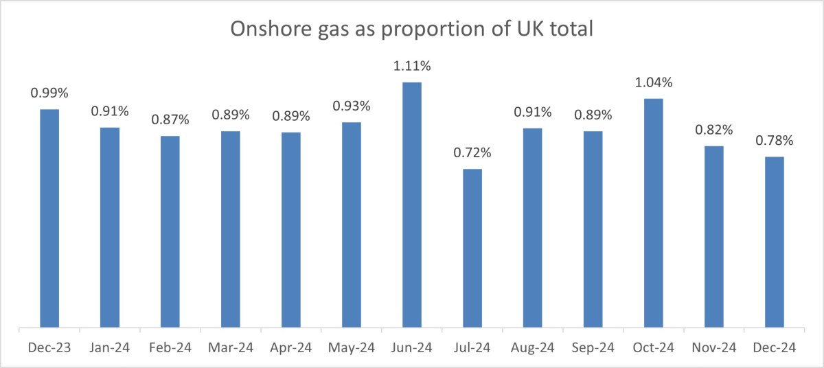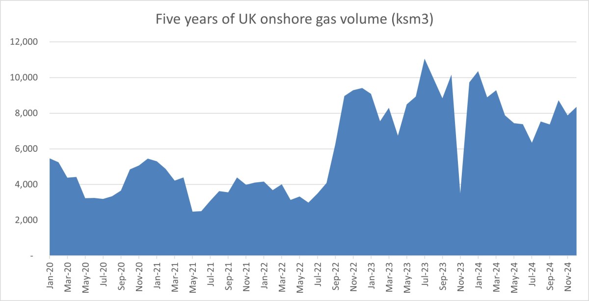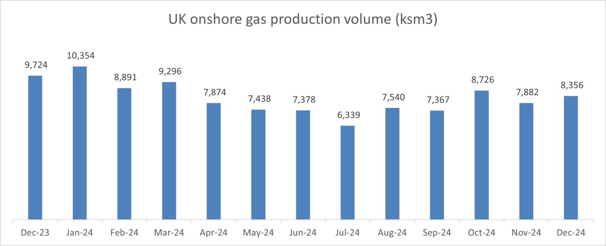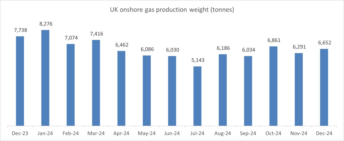 Onshore gas rose 6% in December 2024, compared with the month before but did not return to the highs seen at the start of the year.