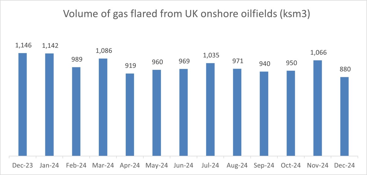 Volume of flared gas at UK onshore oil fields: 880ksm3