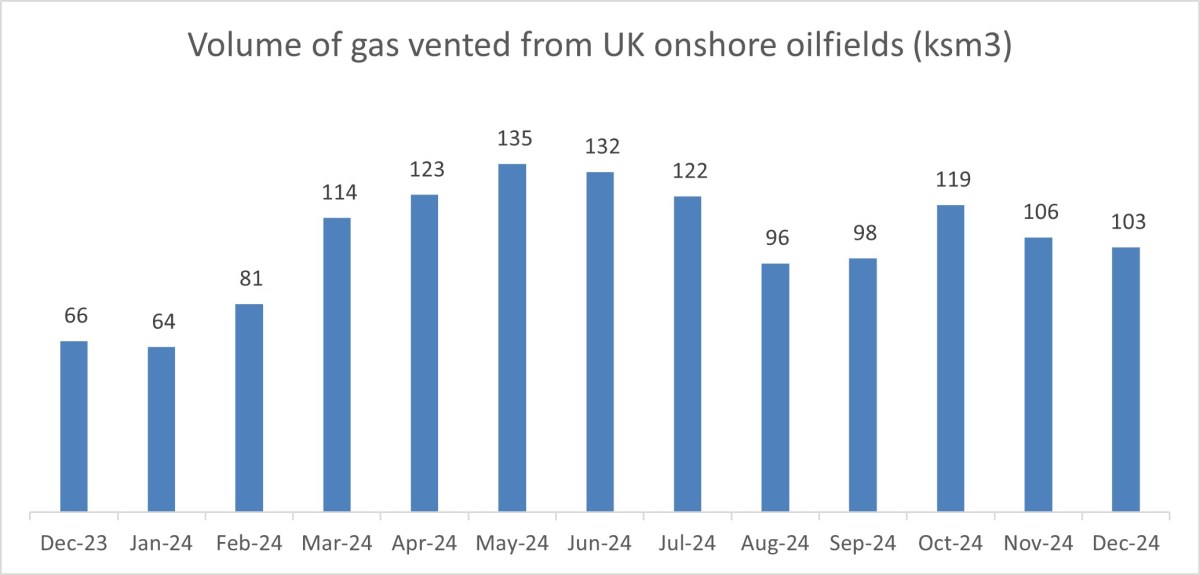 Volume of vented gas at UK onshore oil fields: 103ksm3