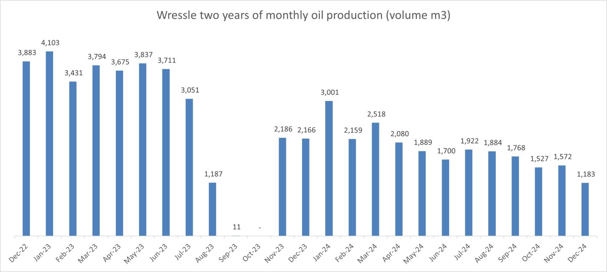 The December 2024 data shows there was no production at 14 UK onshore oilfields, one more than in November 2024. The additional field was Horse Hill in Surrey, where planning permission was quashed by the Supreme Court in June 2024.