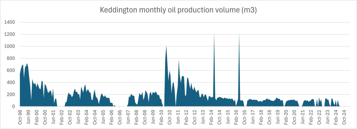 Before the production restart, the most recent oil extraction at Keddington was in May 2024. The site, in PEDL005, is operated by Egdon Resources.
