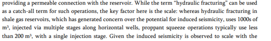 “Low level reservoir stimulation has no past record of causing seismicity which has only been associated with large scale, high volume hydraulic fracturing of shale gas formations.”