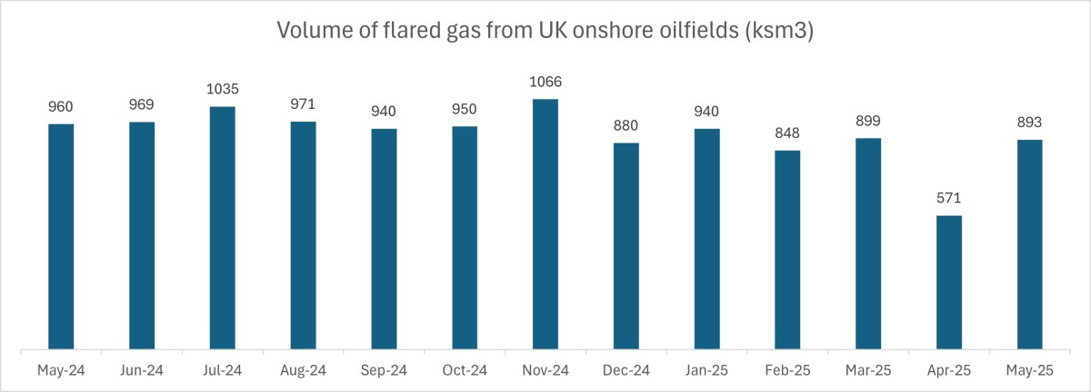 Volume of flared gas at UK onshore oil fields: 893ksm3