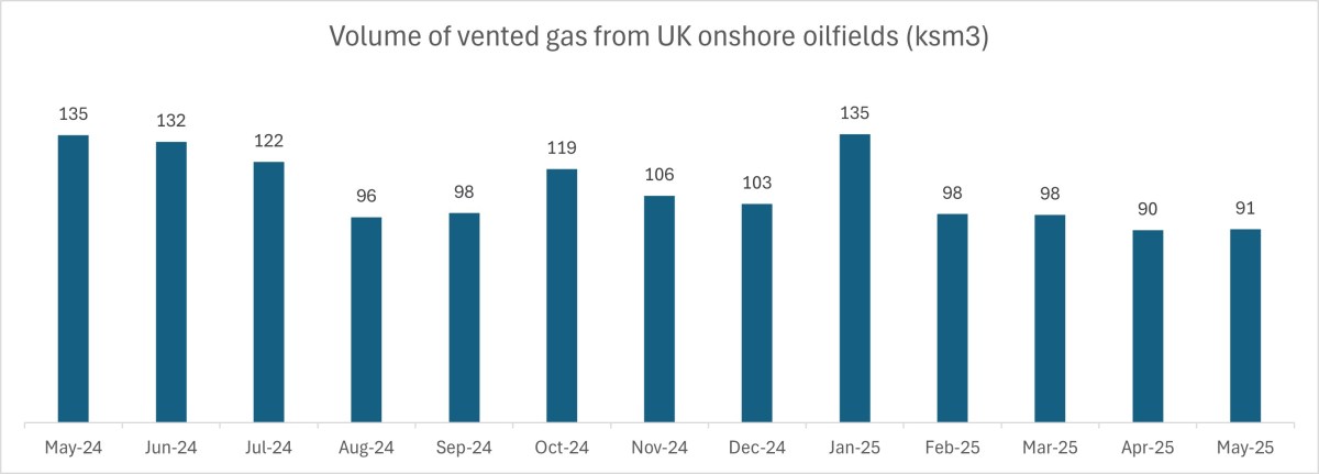 Volume of vented gas at UK onshore oil fields: 91ksm3