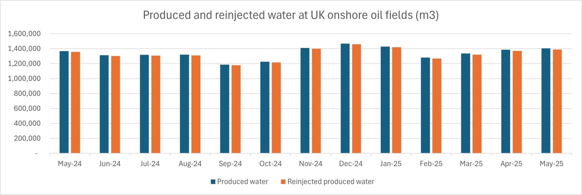 Volume of produced water at UK onshore oil fields: 1,406,011m3
