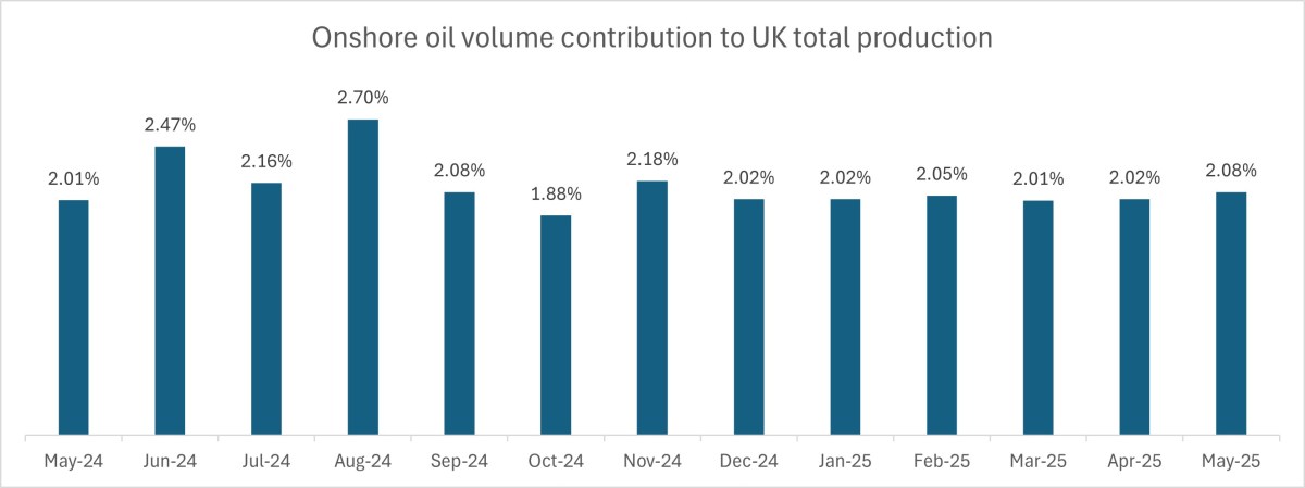 Onshore oil volume was up slightly in May 2025 compared with April – but only marginally more than would have been expected from the longer month.