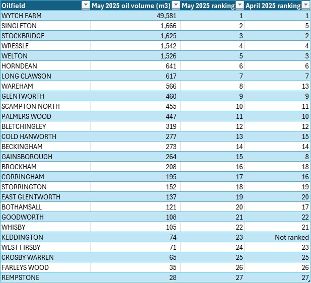 The May 2025 data shows there was no production at 16 UK onshore oilfields. This was two more than in April 2025. Kimmeridge, Beckingham West and Humbly Grove recorded no production in May 2025. Keddington, which had no production in April 2025, produced in May 2025