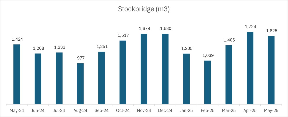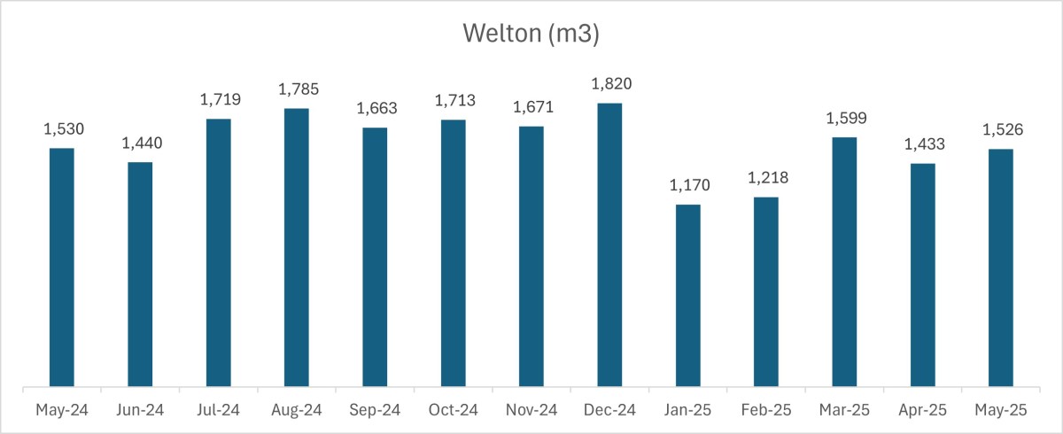 New data field – we will add past data in the coming months. April 2025 137m3, March 2025 187m3, February 2025 176m3
